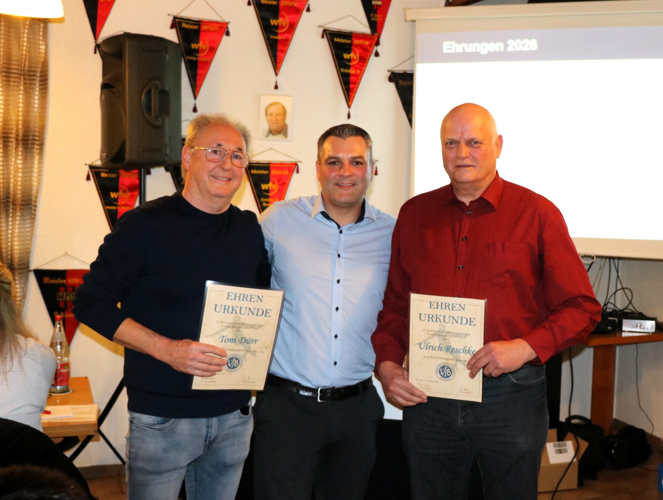 Für 50 Jahre Treue zum Verein und damit verbunden die Ehrenmitgliedschaft wurden Toni Dürr und Ulrich Reschke geehrt.
